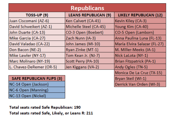 State Legislatures 12 state chambers are competitive-either Lean Republican, Toss-up, or Lean Democratic.