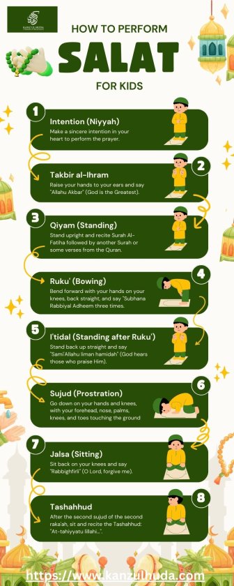 Encourage children to learn Salah through consistent practice and understanding of its significance. Utilize resources like Kanzul Huda and emphasize that the best way to teach Salah is to educate children about Islamic knowledge, including Fard Ayn (individual obligations in Islam), nurturing their spiritual growth and fostering a deep connection with their faith. By integrating these steps into their daily routine with patience and encouragement, children can embrace Salah as a cherished part of their lives, ensuring a meaningful connection with Allah throughout their journey of faith.
