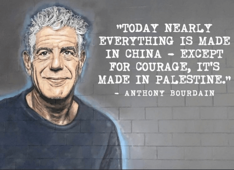 Siri: Dude, next time you utter the word "Palestinians," remember the quote by former chef, author, and TV host Anthony Bourdain: "Today nearly everything is made in China except for courage-it's made in Palestine."