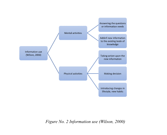 "Information use" is the consequence or the result of information seeking. It can be in two forms: mental and physical acts (Wilson, 2000). Answering the questions on the subject is the first use of information, which involves the mental action of adding or incorporating the information found into the existing knowledge on the subject.