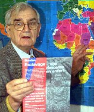 The President of 'Christian Solidarity International (CSI) -France', 76-year-old father Paul Humbrecht, displays his map of what he called religious oppression throughout the world, in his presbytery at Rantzweiler 26 December. Humbrecht voiced concern over the alleged trafficking of slaves in Sudan. The CSI has already 'bought back' more than 4,000 slaves the past three years. |