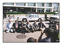 Leaders of various Muslim American organizations staged a sit-in outside the State Department headquarters June 5, 2001 |
