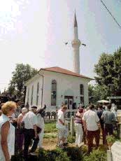 A group of believers arrive for the opening ceremony of the mosque in Gradiska, 80 km north of Banja Luka, 14 July 2001. Several hundred Bosnian Muslims gathered in the Serb-run town of Gradiska on Saturday for a ceremony to mark the inauguration of a mosque that was rebuilt after being destroyed during the 1992-95 war. The original Obradovacka mosque, built three centuries ago, was destroyed by Bosnian Serbs during the war along with other nine mosques in Gradiska |