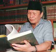 Hashim Salamat, chairman of the separatist Moro Islamic Liberation Front (MILF) reads the Quran in a library in his well guarded quarters located in the jungles of Camp Abubakar 27 February. The camp occupying three towns is main MILF camp in the southern Philippine island of Mindanao. |