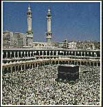 | A sea of humanity - men, women & children - praying in the first sanctuary built for the worship of God. The Kaba in Makkah |