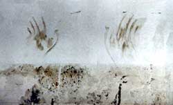 | Imprints of hands of the victims of the al-Amiriya bomb shelter etched in the wall by the heat of the explosion. A US Bomb was dropped on the shelter in 1991 during the Gulf War, killing 403 civilians. |