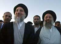 | The leader of the biggest anti-Saddam Hussein Shiite opposition group Ayatollah Mohammad Baqir al-Hakim, left, is greeted by Ayatollah Mohammad Ali Jazayeri. |