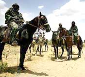 | Militia in Darfur ride around on horses and camels accused of committing atrocities. |