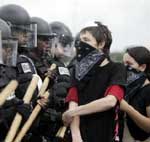 Protesters are stopped by police in riot gear in Brunswick, Georgia which is closest mainland city to the exclusive Sea Island resort where the G8 Summit is taking place.