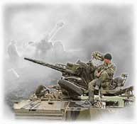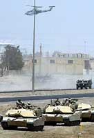| US Military helicopters and US Abraham tanks gather around Fallujah. |