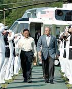 The Bush administration has matched this public and private pressure with enticements and implicit threats. During his March visit to Islamabad, Powell designated Pakistan a major non-nato ally, a status that allows its military to purchase a wider array of U.S. weaponry. Powell pointedly refused to criticize Musharraf for pardoning nuclear physicist A.Q. Khan--who, the previous month, had admitted exporting nuclear secrets to Iran, North Korea, and Libya--declaring Khan's transgressions an "internal" Pakistani issue. In addition, the administration is pushing a five-year, $3 billion aid package for Pakistan through Congress over Democratic concerns about the country's proliferation of nuclear technology and lack of democratic reform.