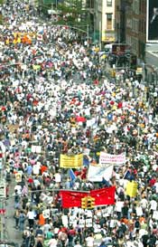 | According to some estimates, 500,000 Anti-Bush demonstrators protested in New York as the 2004 Republican Party Convention got underway. |