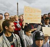 | Demonstrators, including journalists and members of the Muslim community, gathered on the Trocadero Esplanade in Paris on Monday to protest against the kidnapping |