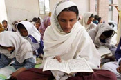 | Gang-rape victim Mukhtaran Mai reads the Quran along with her students at her home village of Meerwala near Multan in Pakistan |