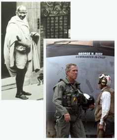 Few world leaders today less embody the ideals Gandhi represents than Bush. Does he not know this? Does he think some PR advantage will accrue from his hollow gesture in Rajghat, or that it will mask the horror of his incompetence?