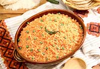 Today Mexican families still sit down to dinners that reveal their Islamic origins. They begin with a "watery" soup (sopa aguada), such as a broth with tiny albondigas. Then comes a "dry soup" (sopa seca), such as "Spanish rice," which is none other than the pilau of the Islamic world. The main course is a piece of chicken or meat accompanied by a green sauce, a nut sauce (nogada), an almond sauce (almendrada) or a spicy reddish-brown sauce (mole). After the meal comes a quince paste, with a little fresh cheese. Accompanying the meal is a refreshing drink-an agua fresca, as the Islamic sharbat is called in Mexico-a colorful, lightly sweetened homemade beverage of lime, melon or milky ground rice with almonds and cinnamon.
