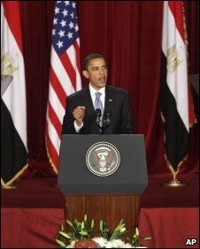 | President Obama calls for a 'new beginning between the United States and Muslims' during his speech at Cairo University in Egypt |