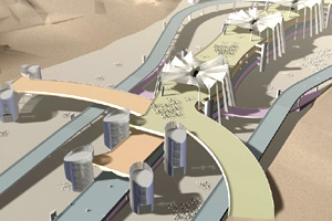 The oval design of the pebbles basins and the three 40-meter-high pillars will improve the flow of pilgrims and increase the capacity of the bridge, which will help reduce congestion while pilgrims are performing the stoning ritual.