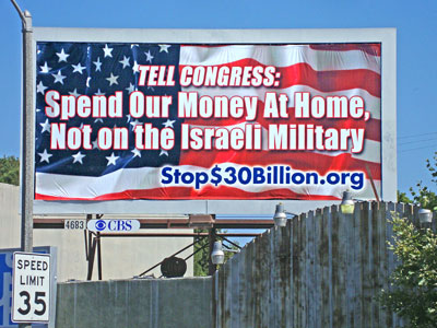 CBS Outdoor likely buckled to pressure from pro-Israeli groups and their paid shills in Congress. Rep. Howard Berman wrote a memo (available on his website) to the Coalition to Stop $30 Billion to Israel, the sponsor of the billboard campaign, condemning the billboards and referring to alleged complaints from his San Fernando Valley constituents.