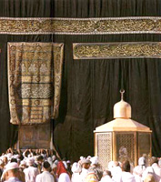 | The brass structure in front of the Kaaba contains the stone on which Prophet Abraham stood and called people to the House of God, called Muqame Ibrahim (Station of Abraham). |