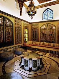 Shangri La is not the home of a collector of fine art. Rather, it showcases an eclectic collection of Islamic art and artifacts, as much a reflection of Doris Duke's taste and interests as it is of the cultures represented by the pieces. How else to explain the proximity of a stunning space, called the "Turkish Room," an elaborate room purchased from a wealthy family in Syria and shipped to Honolulu, and a Persian mihrab, an intricately detailed tiled niche that's used to indicate the direction of Mecca for the faithful. In Shangri La, the mihrab faces east, not northwest as it should. But these major elements of Shangri La are indicative of Duke's broad interest in Islamic art, not to mention her ability to acquire such treasures.