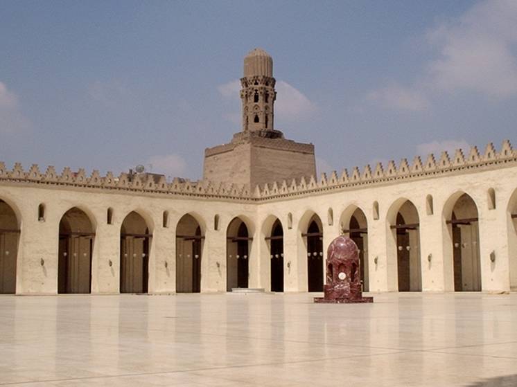 Correspondingly, the mosque of Ahmad b. Tulun, which had been built exactly 94 years before the arrival of the Fatimids in Egypt, has a stucco panel with an elaborate arabesque whose highlight are the words: "There is no god but Allah; Muhammad is Allah's messenger; 'Ali is Allah's wali or friend". But to an insightful observer, such decorative panel is an alien addition to the mosque and its extremely modest and straightforward decorative style, especially in terms of the panel's placement, content and design. The panel rather looks like an adopted and directly transported element from the subsequent decoration and embellishment realms of the mosques of al-Hakim, al-Azhar, al-Aqmar and indeed of all the other Fatimid buildings, in particular those of the later periods. At any rate, it is believed that the decorative panel was part of what is today called "the Fatimid mihrab or praying niche" inside the mosque of Ahmad b. Tulun. The Fatimid mihrab was one of a few mihrabs that existed inside the mosque. This additionally boosts an argument that the mosque of Ahmad b. Tulun had somewhat a special place in the Fatimid psyche, as a result of which much of the form of its colossal and massive colonnades and the spacious courtyard served as a source of inspiration for the same inside the mosque of al-Hakim.