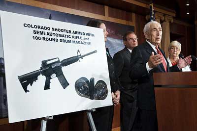 A. The easy availability of guns, including semiautomatic weapons, ammunition and other paraphernalia. Holmes, for instance, not only purchased some 6,000 rounds of ammo on the Internet but "a high-capacity 'drum magazine' large enough to hold 100 rounds and capable of firing 50 or 60 rounds per minute - a purchase that would have been restricted under proposed legislation that has been stalled in Washington for more than a year," according to the New York Times.