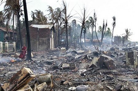 The Buddhist monks inside Myanmar have long been known for their sheer bigotry against the non-Buddhists. In Toungoo on May 16, 2001, a Muslim mosque teacher had his eyes cut out after he refused to worship the monks. He later died. On the same day a Muslim family was burned to death when their house was set on fire by the mob. As we have recently witnessed during lynching death of the ten Tablighi Muslims on June 3 of this year, the police simply stood by and did not held back the Buddhist mob.