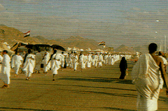 Photo: Pilgrims at the climax of their hajj, "standing" before God at 'Arafat near the spot where Muhammad delivered his farewell sermon.