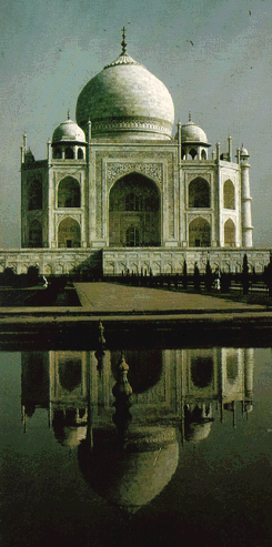 Photo: The peak of Mogul architecture and possibly the most famous work of all times and cultures is the dazzling Taj Mahal mausoleum built at Agra in 1629.