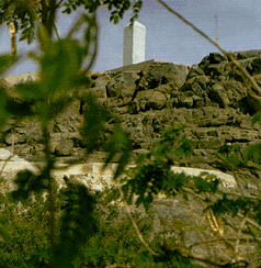 Photo: A pillar marks the Mount of Mercy the rocky hill rising from the plain of Arafat.