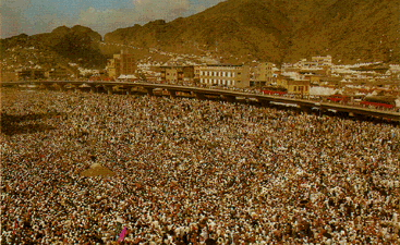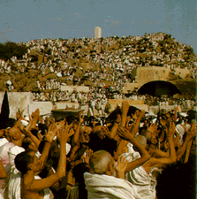 Photo: Pilgrims at the climax of their hajj, "standing" before God at 'Arafat near the spot where Muhammad delivered his farewell sermon.