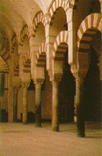 Photo: A forest of eight hundred and fifty pillars connected by Moorish arches lines the great mosque of Cordoba.