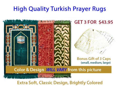 SET of 3 TURKISH PRAYER RUGS. HIGH QUALITY. EXTRA SOFT & LONG LASTING. Size 44 x 27 inches. COLOR & DESIGN WILL BE DIFFERENT from the picture.$47.95