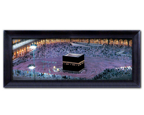 Bless And Beautify Your Home Instantly with superbly framed Islamic Art at affordable prices.This image depicts the Holy Mosque in Mecca (Kabaah) after sunset