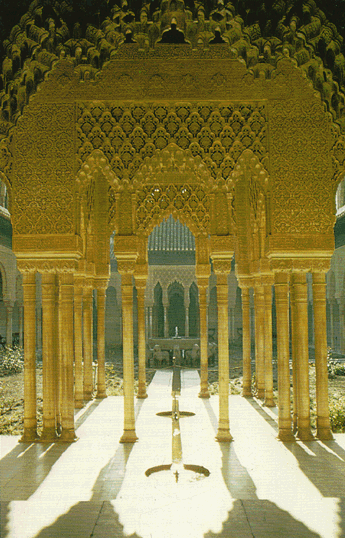 Photo: Water courses and fountains make an oasis of the Alhambra palace built at Granada in the fourteenth century Here incredibly light and elegant elements of Islamic decoration find their highest realization.